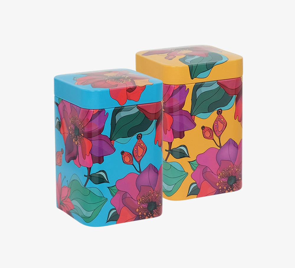 The square 100g Poppy Tin is ideal for storing your favourite Elmstock tea. Available in two eye popping colours.