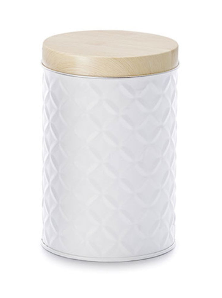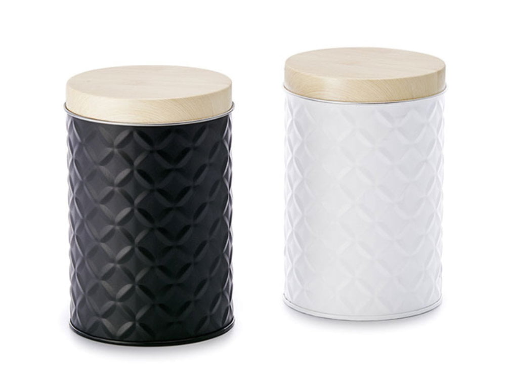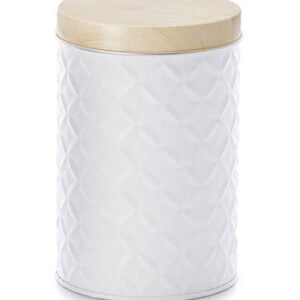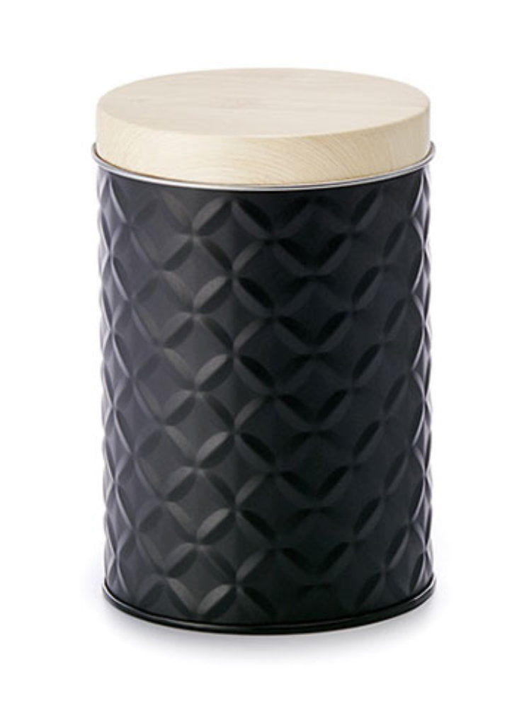 The Mason Tin is a medium round tin and with an embossed geometric design and timber look lid. It is available in 2 colours and holds approximately 200g of most teas.