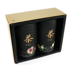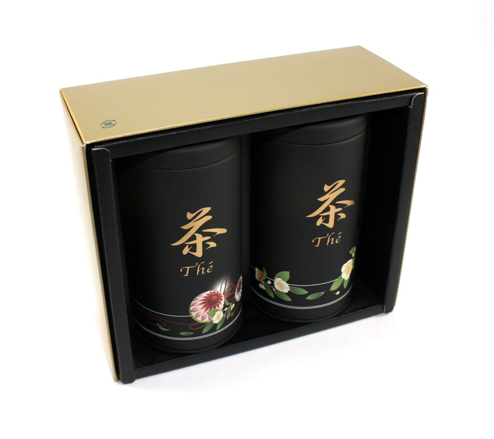 This stunning Japanese Anakusa tin set is the perfect gift for tea lovers. Nestled in a gold and black presentation box, it includes two beautifully finished 250g black tins with bold floral designs.